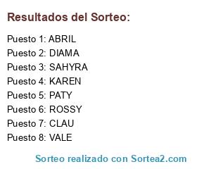 Lista de participantes: CLAU, PATY, ABRIL, VALE, SAHYRA, ROSSY, KAREN, DIAMA.