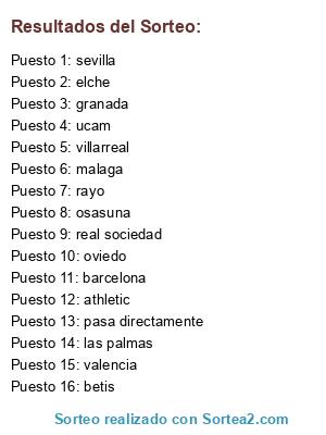 Resultados del sorteo: