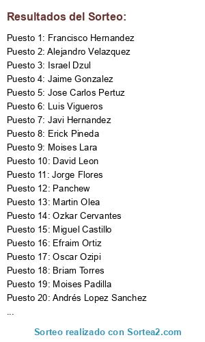 Lista de participantes: Oscar Velazquez, Ole Gonzalez, Miguel Castillo, Lucho Diaz, Juaniito Albañez, Erick Pineda, Luis Olivarria, Felix Favela, Moises Lara, Roy CM, Oscar Ozipi, Beto Gonzalez, Adrian Nuñez, Rogelio Lugo, Edward Antonio, Israel Dzul, Luis Gustavo Garcia, Jaime Gonzalez, Neuer Hiwatari, Andrés Lopez Sanchez, Moises Padilla, Martin Olea, Paul Vargas, Ozkar Cervantes, Jesus Ramirez, Irvin Diaz, Luis Vigueros, Panchew, Mate Fonseca, Jorge Flores, Briam Torres, Toño Trujillo, Efraim Ortiz, David Leon, Javi Hernandez, Francisco Hernandez, Fabian De la Peña, Alan Díaz, Alejandro Velazquez, Alexandro Lopez, Jose Carlos Pertuz, Marcos Hernandez.