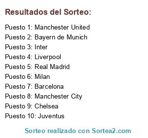 Lista de participantes: Chelsea, Real Madrid, Inter, Barcelona, Milan, Manchester United, Manchester City, Bayern de Munich, Liverpool, Juventus.