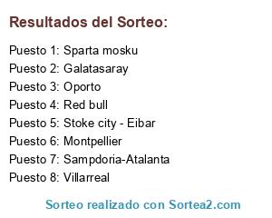 Lista de participantes: Sampdoria-Atalanta, Red bull, Oporto, Villarreal, Sparta mosku, Montpellier, Galatasaray, Stoke city - Eibar.