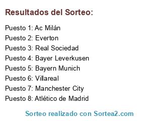 Lista de participantes: Bayer Leverkusen, Bayern Munich, Ac Milán, Villareal, Real Sociedad, Atlético de Madrid, Manchester City, Everton.