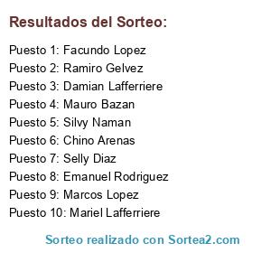 Lista de participantes: Damian Lafferriere, Mauro Bazan, Facundo Lopez, Mariel Lafferriere, Silvy Naman, Selly Diaz, Chino Arenas, Emanuel Rodriguez, Marcos Lopez, Ramiro Gelvez.