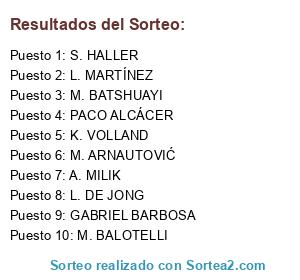 Lista de participantes: M. BATSHUAYI, A. MILIK, M. BALOTELLI, GABRIEL BARBOSA, K. VOLLAND, S. HALLER, L. MARTÍNEZ, L. DE JONG, PACO ALCÁCER, M. ARNAUTOVIĆ.