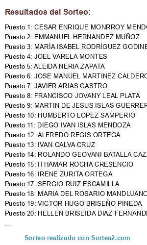 Resultados del sorteo: