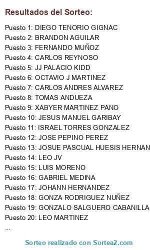 Lista de participantes: ABDEL PEREZ, ABRAHAM LOZANO, BRANDON AGUILAR, CARLOS ANDRES ALVAREZ, CARLOS CUMES, CARLOS REYNOSO, DIEGO TENORIO GIGNAC, EDUARDO TOVAR, FERNANDO MUÑOZ, GABRIEL MEDINA, GONZA RODRIGUEZ NUÑEZ, GONZALO SALGUERO CABANILLAS, ISRAEL TORRES GONZALEZ, JAVIER TAMA, JESUS MANUEL GARIBAY, JJ PALACIO KIDD, JOHANN HERNANDEZ, JOSE PEPINO PEREZ, JOSUE ARAGON, JOSUE PASCUAL HUESIS HERNANDEZ, JUAN CARLOS VELIZ, LEO JV, LEO MARTINEZ, LEONARDO MARTINEZ MEZA, LUIS DIAZ, LUIS MORENO, MARIANO NICOLAS, MAURICIO LOYA, OCTAVIO J MARTINEZ, OSCAR VELAZQUEZ, ROBERTO ALEXANDER LOPEZ, TOMAS ANDUEZA, XABYER MARTINEZ PANO.