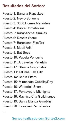 Resultados del sorteo: