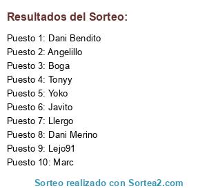 Lista de participantes: Lejo91, Marc, Angelillo, Llergo, Javito, Tonyy, Boga, Dani Merino, Dani Bendito, Yoko.