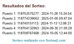- 2025-01-09 11:07:38 (GMT): Se ejecuta el sorteo