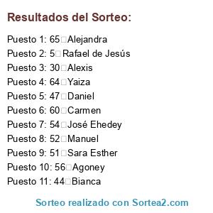 Resultados del sorteo: