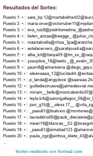 Este sorteo ha sido certificado por Sortea2. Sortea2 garantiza que: