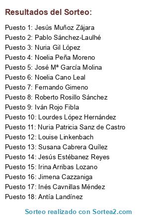 - Puesto 11: Nuria Patricia Sanz de Castro