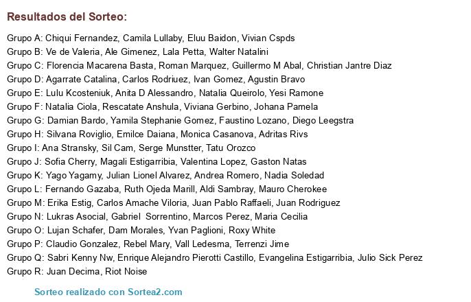 Lista de participantes: Lukras Asocial, Lala Petta, Ana Stransky, Magali Estigarribia, Evangelina Estigarribia, Tatu Orozco, Emilce Daiana, Natalia Queirolo, Guillermo M Abal, Anita D Alessandro, Christian Jantre Diaz, Juan Pablo Raffaeli, Serge Munstter, Sabri Kenny Nw, Erika Estig, Nadia Soledad, Claudio Gonzalez, Diego Leegstra, Carlos Amache Viloria, Juan Rodriguez, Maria Cecilia, Ale Gimenez, Enrique Alejandro Pierotti Castillo, Vall Ledesma, Gaston Natas, Dam Morales, Lulu Kcosteniuk, Johana Pamela, Florencia Macarena Basta, Rebel Mary, Yesi Ramone, Walter Natalini, Ve de Valeria, Rescatate Anshula, Agarrate Catalina, Damian Bardo, Juan Decima, Terrenzi Jime, Ruth Ojeda Marill, Carlos Rodriuez, Eluu Baidon, Camila Lullaby, Fernando Gazaba, Sil Cam, Monica Casanova, Riot Noise, Natalia Ciola, Yago Yagamy, Silvana Roviglio, Aldi Sambray, Agustin Bravo, Chiqui Fernandez, Vivian Cspds, Lujan Schafer, Roxy White, Mauro Cherokee, Andrea Romero, Ivan Gomez, Valentina Lopez, Faustino Lozano, Yamila Stephanie Gomez, Roman Marquez, Marcos Perez, Viviana Gerbino, Sofia Cherry, Yvan Paglioni, Adritas Rivs, Julian Lionel Alvarez, Gabriel Sorrentino, Julio Sick Perez.