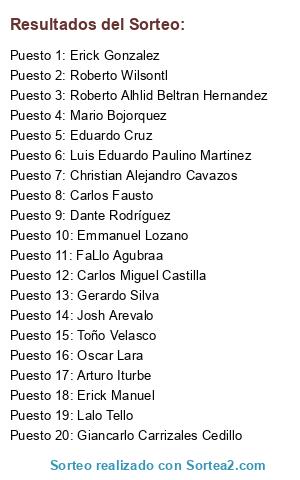 Resultados del sorteo: