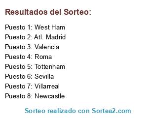 Lista de participantes: Newcastle, Tottenham, Atl. Madrid, Sevilla, Valencia, Villarreal, Roma, West Ham.