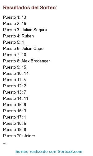 Resultados del sorteo: