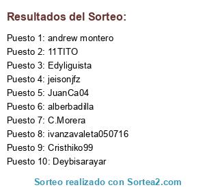 Lista de participantes: Deybisarayar, alberbadilla, JuanCa04, andrew montero, ivanzavaleta050716, Cristhiko99, C.Morera, Edyliguista, jeisonjfz, 11TITO.