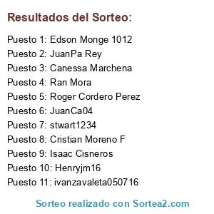 Lista de participantes: Roger Cordero Perez, JuanCa04, ivanzavaleta050716, JuanPa Rey, Canessa Marchena, Isaac Cisneros, Cristian Moreno F, Edson Monge 1012, stwart1234, Henryjm16, Ran Mora.