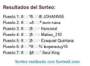 Lista de participantes: 🇦🇷 Ezequiel Quintana, 🇦🇷 Matias_210, 🇦🇷 francoxxl, 🇳🇮 JOHANN55, 🇧🇴 Seul King, 🇺🇾 leoperezuy10, 🇻🇪 euro nava.