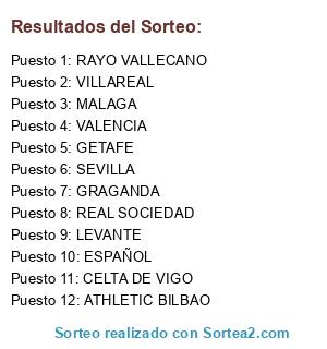 Lista de participantes: VALENCIA, GRAGANDA, ESPAÑOL, REAL SOCIEDAD, ATHLETIC BILBAO, GETAFE, LEVANTE, RAYO VALLECANO, CELTA DE VIGO, SEVILLA, MALAGA, VILLAREAL.