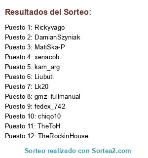 Lista de participantes: TheRockinHouse, Lk20, TheToH, kam_arg, fedex_742, chiqo10, Rickyvago, gmz_fullmanual, MatiSka-P, DamianSzyniak, xenacob, Liubuti.