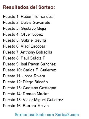 Lista de participantes: Delvis Gavarrete, Ruben Hernandez, Carlos F. Gutierrez, Gustavo Mejia, Gaetano Castagno, Oliver López, Barrera Melvin, Jorge Rivera, Isai Pavon Sanchez, Diego Briceño, Victor Miguel Gutierrez, Gabriel Sevilla, Vladi Escobar, Anthony Bobadilla, Roman Macias, Paul Grádiz F.