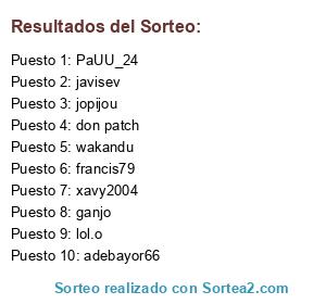 Lista de participantes: lol.o, alex_seven, victorochoa, AKTGANO, xancli, -Calvente-, jimbo7979, KTDNrubo, valencianista, Angel.