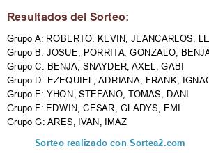 Lista de participantes: EMI, ROBERTO, YHON, EDWIN, STEFANO, SNAYDER, JEANCARLOS, CESAR, BENJAMIN, ADRIANA, FRANK, PORRITA, IVAN, LEO, AXEL, BENJA, DANI, GLADYS, IGNACIO, IMAZ, TOMAS, KEVIN, GONZALO, EZEQUIEL, JOSUE, ARES, GABI.