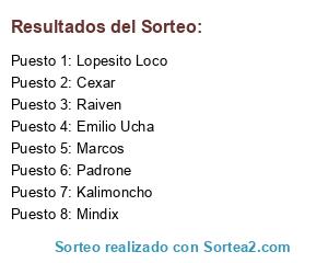 Lista de participantes: Marcos, Padrone, Emilio Ucha, Kalimoncho, Lopesito Loco, Raiven, Cexar, Mindix.