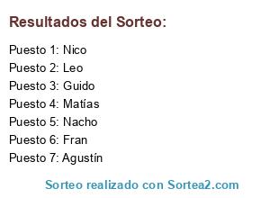 Resultados del sorteo: