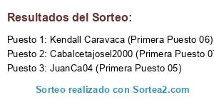 Lista de participantes: JuanCa04 (Primera Puesto 05), Kendall Caravaca (Primera Puesto 06), Cabalcetajosel2000 (Primera Puesto 07).
