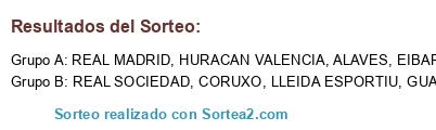 Lista de participantes: REAL MADRID, REAL SOCIEDAD, LLEIDA ESPORTIU, ALAVES, HURACAN VALENCIA, EIBAR, GUADALAJARA, CORUXO.