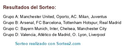 Lista de participantes: Real Madrid, FC Barcelona, Chelsea, Manchester City, Manchester United, Liverpool, Arsenal, Inter, AC. Milan, Bayern Munich, O. Lyon, Atlético de Madrid, Juventus, Oporto, Valencia, Tottenham Hotspur.
