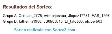 Lista de participantes: El_tato503, EAS_1997, wilmarjoshua, Cristian_2775, JB0503013, Jlopez17781, fathermr1988, elciber503.