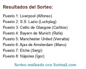 Resultados del sorteo:
