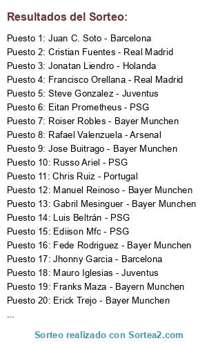 Resultados del sorteo:
