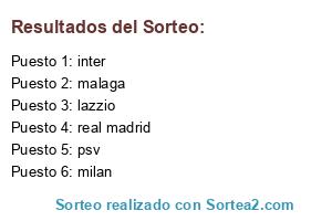Lista de participantes: UEFA: REAL MADRID, UEFA: PSV, UEFA: INTER, UEFA: LAZIO, UEFA: MALAGA, UEFA: MILAN.