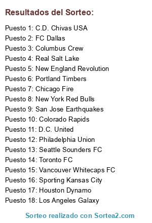 Lista de participantes: Chicago Fire, Columbus Crew, D.C. United, Houston Dynamo, New England Revolution, New York Red Bulls, Philadelphia Union, Sporting Kansas City, Toronto FC, C.D. Chivas USA, Colorado Rapids, FC Dallas, Los Angeles Galaxy, Portland Timbers, Real Salt Lake, San Jose Earthquakes, Seattle Sounders FC, Vancouver Whitecaps FC.