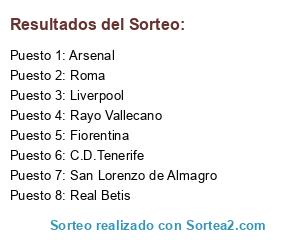 Lista de participantes: Liverpool, Arsenal, Rayo Vallecano, Roma, Real Betis, C.D.Tenerife, San Lorenzo de Almagro, Fiorentina.