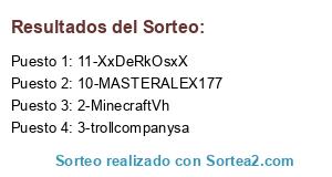 Lista de participantes: 1-DarkAdriih, 2-MinecraftVh, 3-trollcompanysa, 4-TheJoselono1, 5-IvarsHD, 6-SuperHaloblack, 7-Aaron07Street, 8-Jano Gaming, 9-SrPoJeSs, 10-MASTERALEX177, 11-XxDeRkOsxX, 12-DarkAdriih, 13-FrossTHD, 14-MrRumian23, 15-ZOOOM357, 16-Muge Gamplays, 17-gabriel06marin, 18-Franchu Vazquez, 19-Yaxtremme, 20-Proveta97, 21-AllGamingPj, 22-TheJoaco197, 23-DarkDawn Troll.