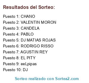 Lista de participantes: CHANO, VALENTIN MORON, EL PITY, AGUSTIN REY, CANDELA, PABLO, DJ MATIAS ROJAS, RODRIGO RISSO, DJ, eeLpipas.