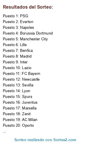 Resultados del sorteo: