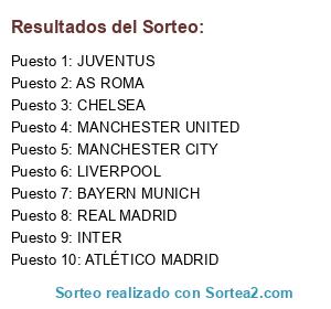 Lista de participantes: REAL MADRID, INTER, CHELSEA, ATLÉTICO MADRID, MANCHESTER UNITED, AS ROMA, LIVERPOOL, BAYERN MUNICH, MANCHESTER CITY, JUVENTUS.