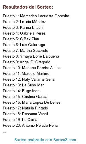 Lista de participantes: Martha Secondo , Carlitos Rodríguez , Lu Ciana , Cristina Garcia , Sebastian Aleman , Sirley Bra , Laura Barquet , Rossana Viera , Angel Di Gregorio , Marina Pereira , QuiQue Próspero , Ivana Rodríguez , Gabriela Perez , La Susy Mar , C Bax Zián , Lilian Davino , Ymayá Boné Balbuena , Fabian E. Blanco , Karina Ellauri , Rosicler Rela , Maria Eugenia Gallero , Mery Dany , Veronica Barboza Martínez , Antonio Pelado Peña , Karina Puente , Rodri Estevez , Nico Moraes , Santi Silvera , Rosita Gimenez , Ximena Graña , Rossana Vanni , Patricia Colombo , Leticia Méndez , Mariana Pereira Alsina , Lorenzo Di Gregorio , Evelyn Reynolds , Natalia Pintado , Ricardo Pazos Franco , Nacho González , Rosario Gonzalez , Lore Beres , Gimena Mendez Alexandre , Elsi Rueco , Naty Valiante Sena , Mariana Aguilera , Walter Presentado , Euge Ines , Marcelo Martino , Rosana De Leon , Maria Lopez De Leites , Cecilia Padilla , Perla Casaña , Cecilia Gómez , Maria Jose Moreira , Florencia Gutierrez , Luis Galarraga , Mercedes Lacuesta Gorosito.