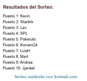 Lista de participantes: Jjarieel, Kevin, LuisH, Mart, Starlink, SPL, Pokeruto, Lac, Konami24, Andrea.