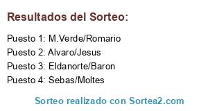 Lista de participantes: Sebas/Moltes, Alvaro/Jesus, M.Verde/Romario, Eldanorte/Baron.
