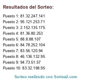 Este sorteo ha sido certificado por Sortea2. Sortea2 garantiza que: