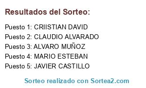 Lista de participantes: marmara73, Abrham4, Fantasma-Loko, tequierobetis1, tenerife_sur, poxo, jcarlinho19, guycola, shogo, paulitux, chiquiteam, ismapatis, krocandio, gullo, Mario13ares, ApOCracK.