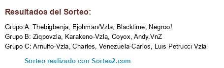 Lista de participantes: Karakeno-Vzla, Charles, Venezuela-Carlos, Ziqpovzla, Coyox, Thebigbenja, Negroo!, Blacktime, Andy.VnZ, Arnulfo-Vzla, Ejohman/Vzla, Luis Petrucci Vzla.