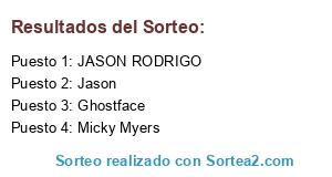 Lista de participantes: Freedy Cruncher, Jason, Micky Myers, Ghostface, JASON RODRIGO.